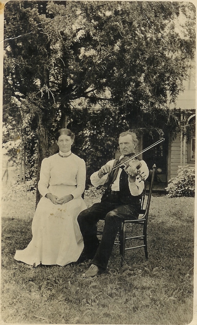Source & Description: George and Matilda Alzina (Smith) Atchey who lived in Quincy, Adams County, Wisconsin from when they married in May 1874 to April 1936 when they both died. He played the fiddle and this picture is a postcard they sent to their son, George Henry Atchey who lived in North Platte, Nebraska. The postcard is dated "October 10, 1915 from Quincy, Wis." George Atchey was born George Ethier and was the son of Joseph and Rose (Delima) Ethier who later, while living in Rudolph, Wood Co., Wisconsin, changed their last name to Akey while their son George changed his to Atchey. Photo contributed by Shannon W.