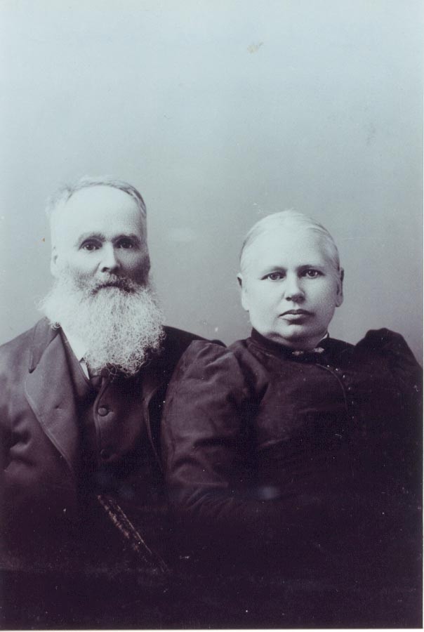 John S. and Isabel A. Douglas. John Smart Douglas born 11 September 1828 in Maine, died 30 January 1917 Adams Co., WI, son of Jeremiah and Margaret (Smart) Douglas. Married 23 March 1856 Isabel Amanda Oakes, who was born 1 May 1839 in Maine, died 1 May 1912 Adams Co., WI, daughter of Edward and Nancy (Lawrence) Oakes. Photo contributed by J.T. Elderkin
