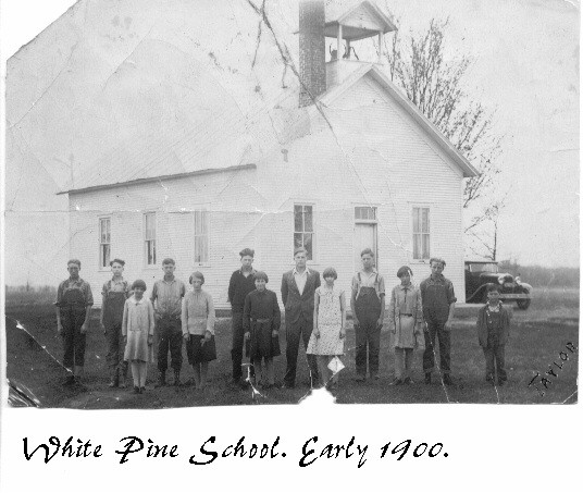 The White Pine School is located in Colburn Adams Co. WI. I have been told that now there are potatoes planted there for the Jays Potato Chips. When the farm was sold, a canning company tore down all the buildings and removed the trees on the old Scott farm too for the planting of vegetables.