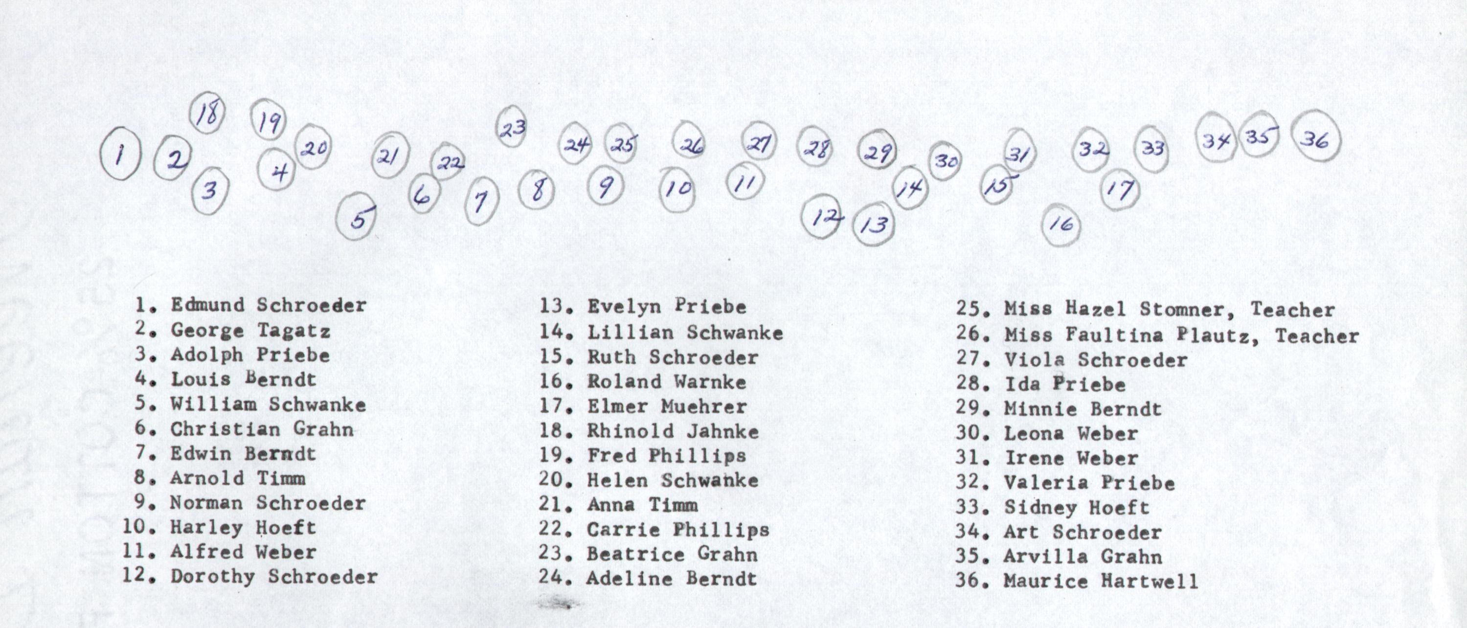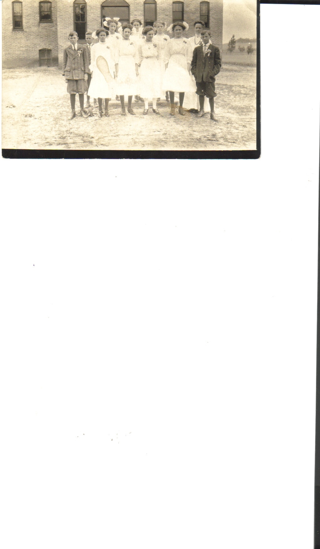 This picture post card had no message however my best guess is the 3rd student from the left and in back would be my mother Edna D Fenske who would have been 10 yrs old