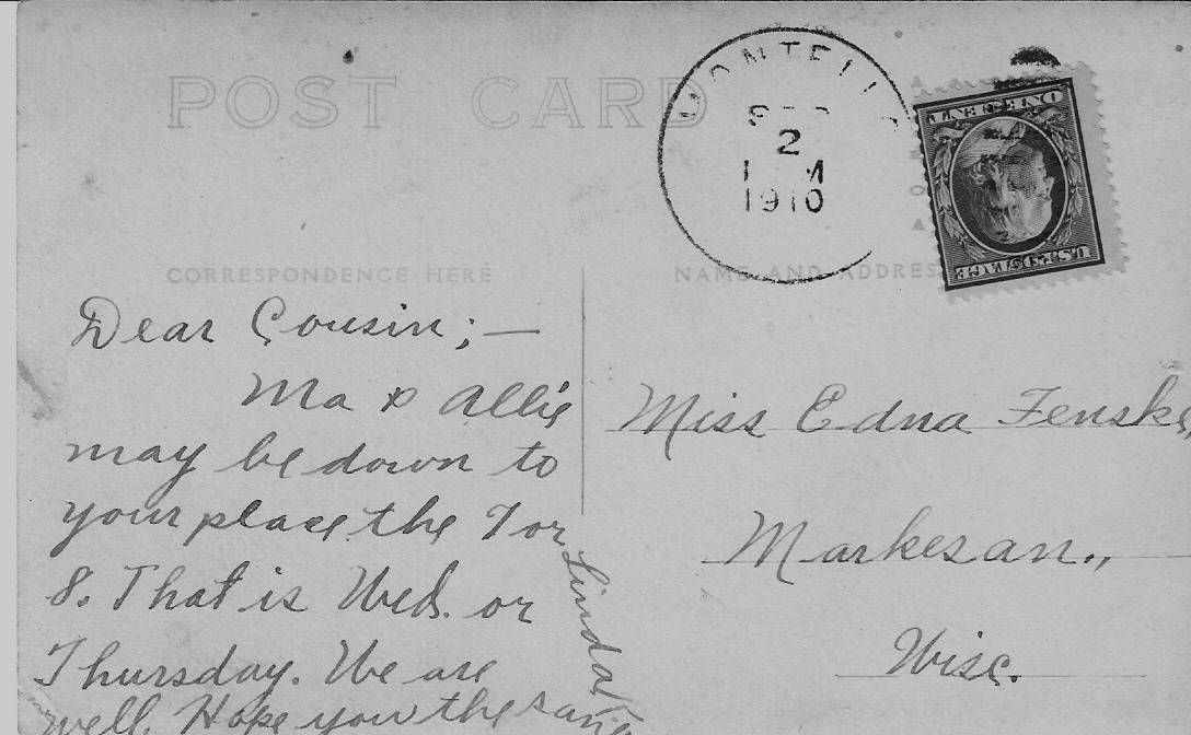 in 1910 and her name was on the backside of the card. Sent by Eugene Gerbitz, added November 2005