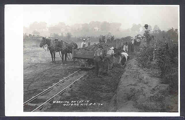 Oxford WI, Working on the railroad circa 1915, from an old postcard.