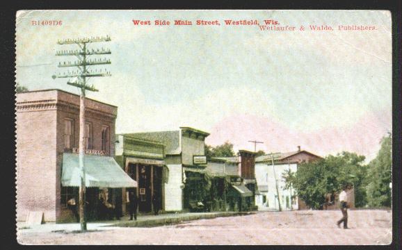 Westfield WI, the west side of Main Street circa 1910, from an old postcard.