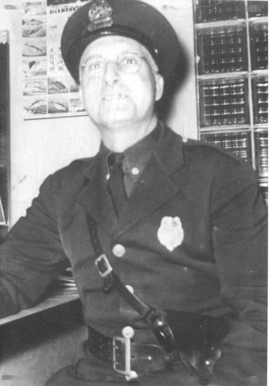Source & Description: Contributed by Willes and Sally Traver, of Archie David Traver. He was Chief Of Police for Adams & Friendship, 1951-1954. (This is my father.) Son of Willis Albert Traver & Hattie Anna Dye. They lived in Grand Marsh. The photo was taken in 1952 at the Cafe 13 in Adams. We believe that there is now a laundromat at that location. Same building we think, and we believe the Cafe 13 was owned by Mr & Mrs Harry Spinner.
