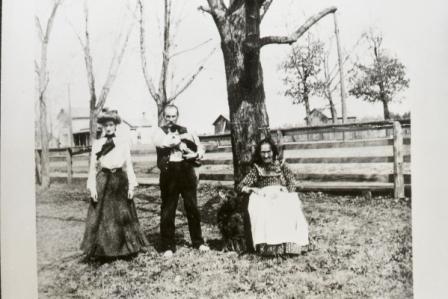Source & Description: Contributed by Cathy Kuhl, Rudolph Phelps and Ernest & Ervin (Jack) Boyd probably from the early 1900's. Rudolph (Dolph) Phelps (back row), born Feb. 1857 Adams Co., died about 1941, son of Edmund & Sarah (Keeler) Phelps, seated with his two nephews-Ernest Boyd (middle), born 29 May 1883 Adams Co., son of Darius Scott & Susan (Phelps) Boyd and Ervin (Jack) Boyd (first row), born 10 Feb. 1885 Adams Co., also the son of Darius Scott & Susan (Phelps) Boyd. Rudolph lived in WI while the Boyd family moved to Olmsted Co., MN.