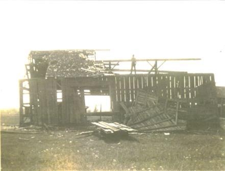 Source & Description: Mark (Niles) Newstrom sent pictures of the Niles homestead taken July 10, 1926. Homestead 4: "What is left of the old barn. And what fun we used to have in that barn. Gosh it does not seem possible. Levi's Joe is up on top."