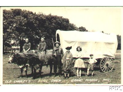 An old postcard of some oxen at Grand Marsh, was postmarked in 1939, anonymous donor
