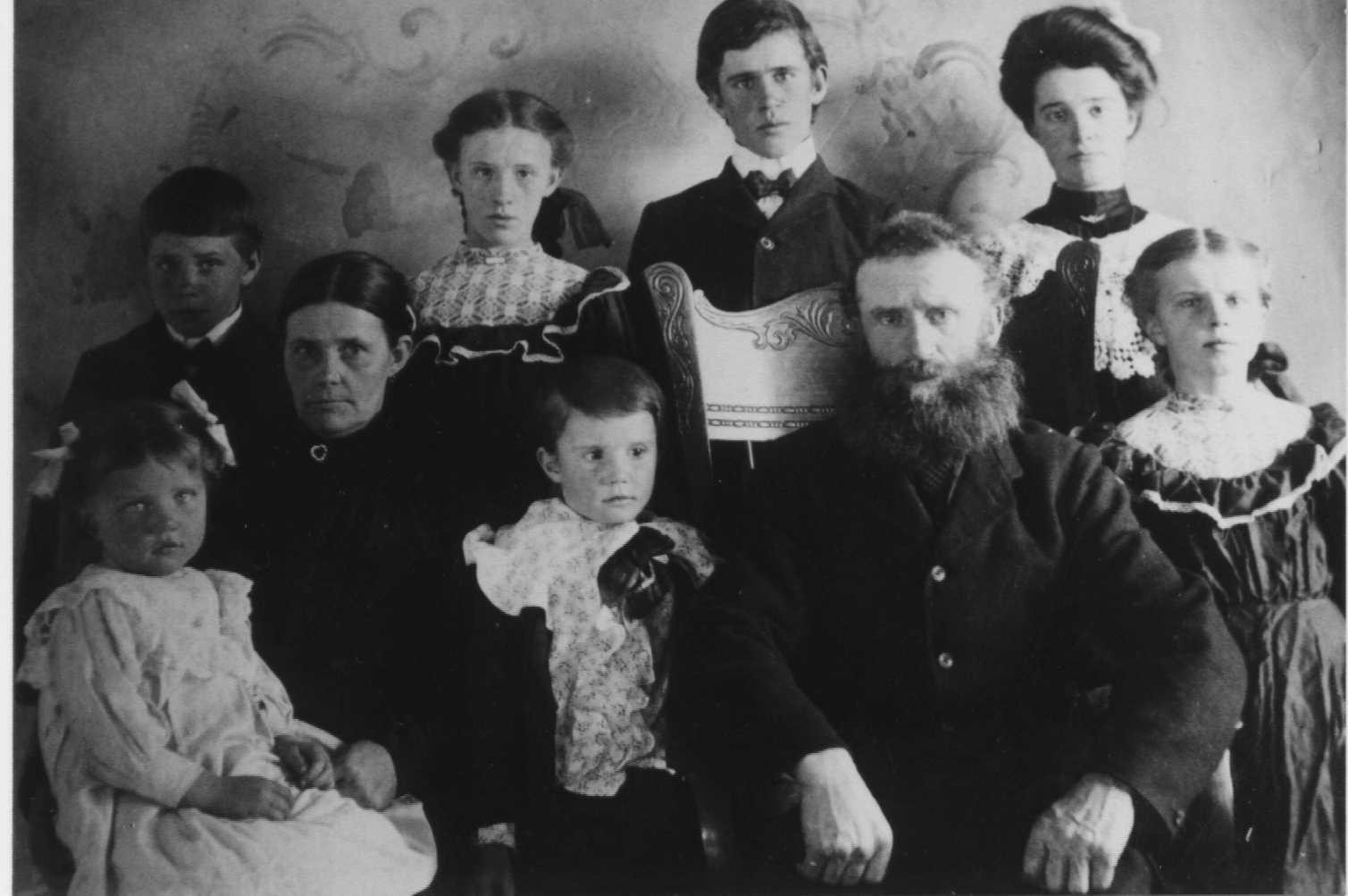The 2nd picture is of their children that survived to adulthood (L to R back: Hans, Walter, Ramsey, Harvey. Seated in Front: Hannah (Madsen) & Christine (Weylandt).