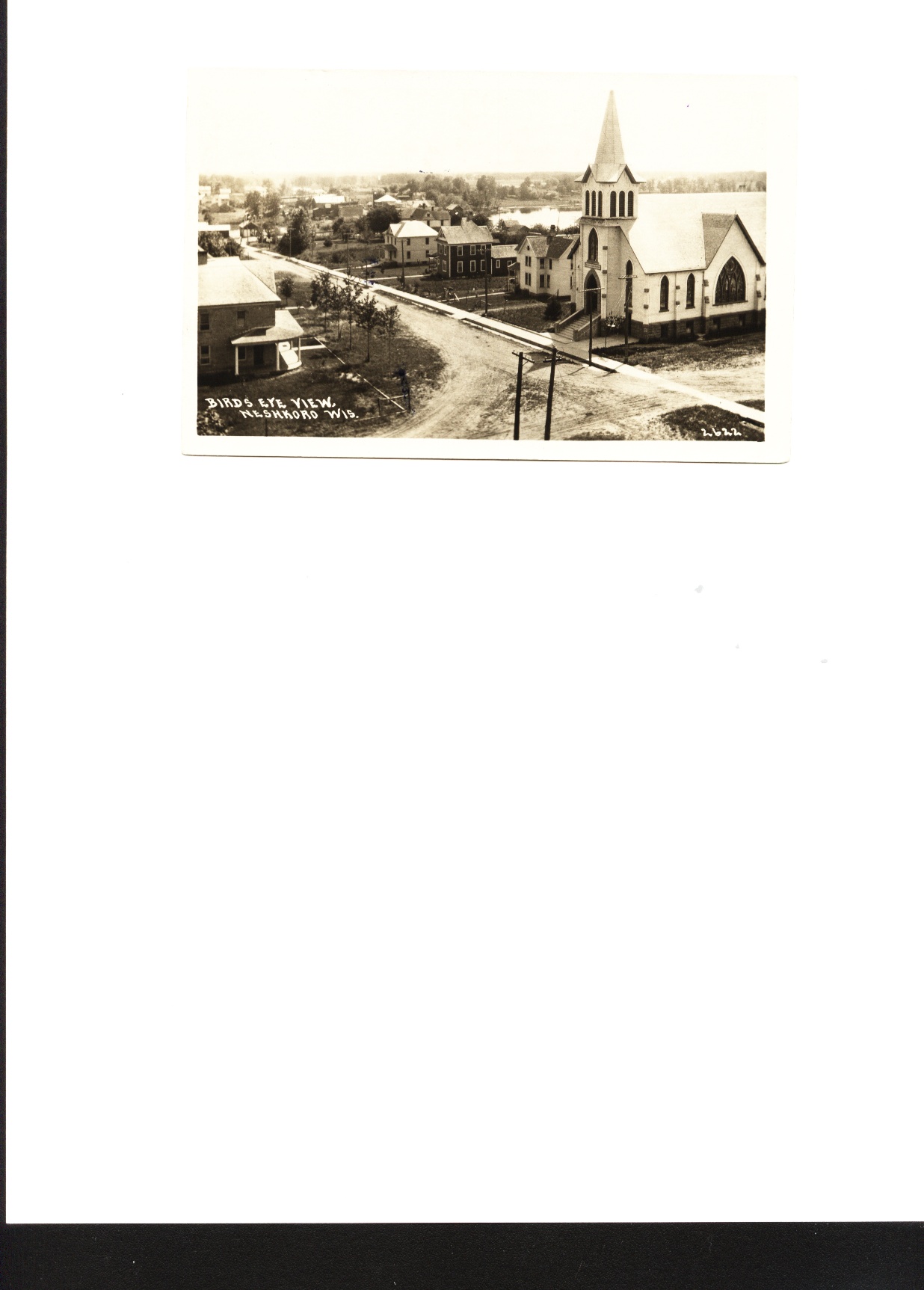 Vicki S sent a scan of this old postcard of part of Neshkoro WI with the Zion Lutheran church in foreground.